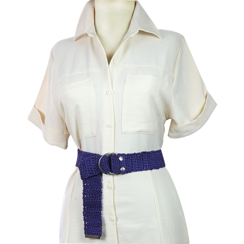 Purple Color Mercerized Silver Color D Buckle Collar Belt