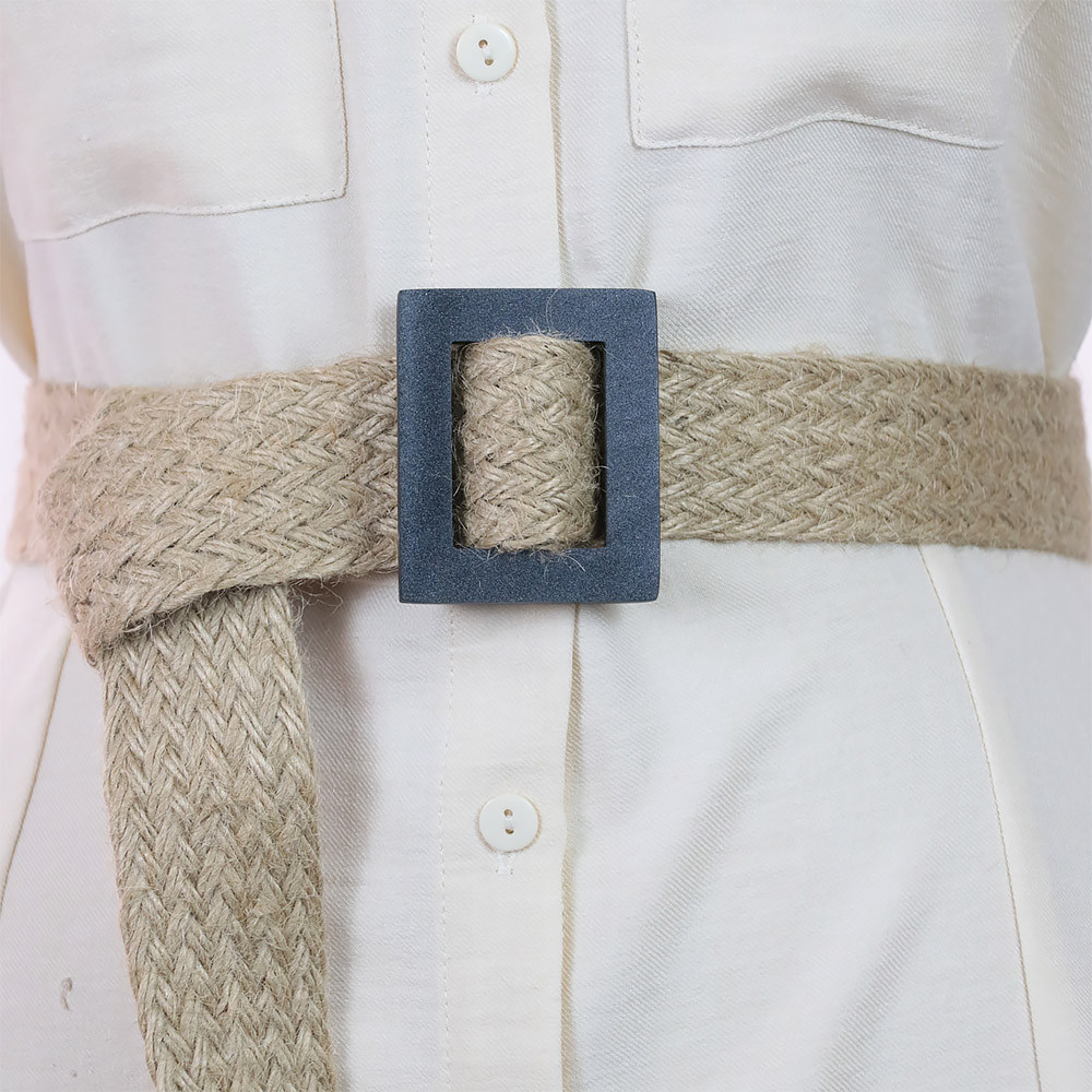 Jute Straw Wrap Square Brown Buckle Women's Belt