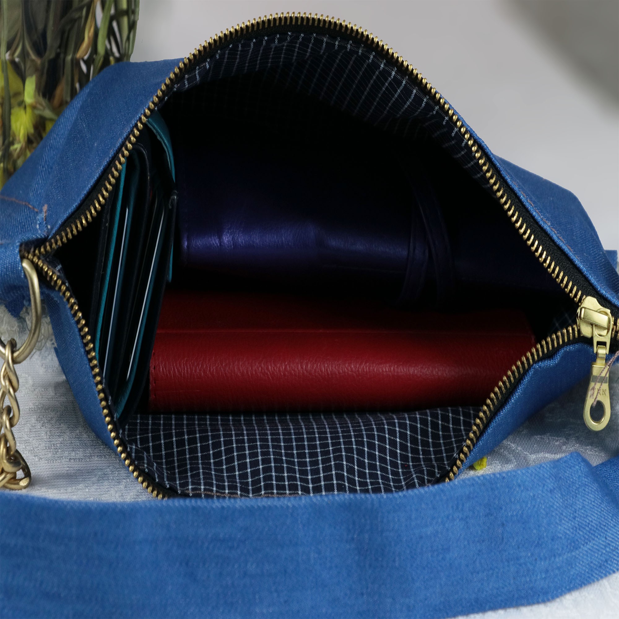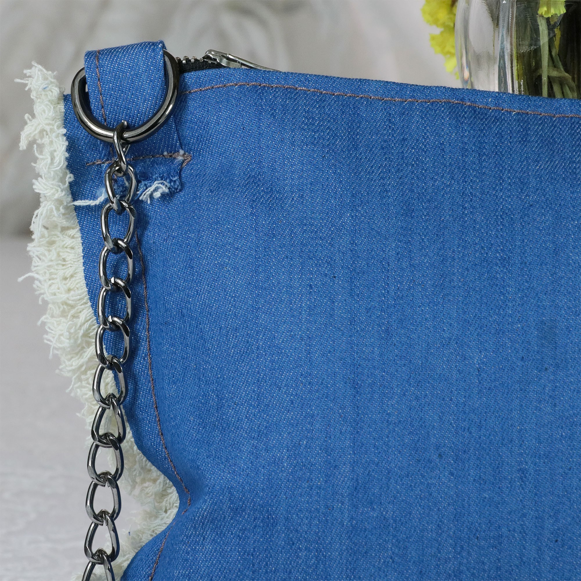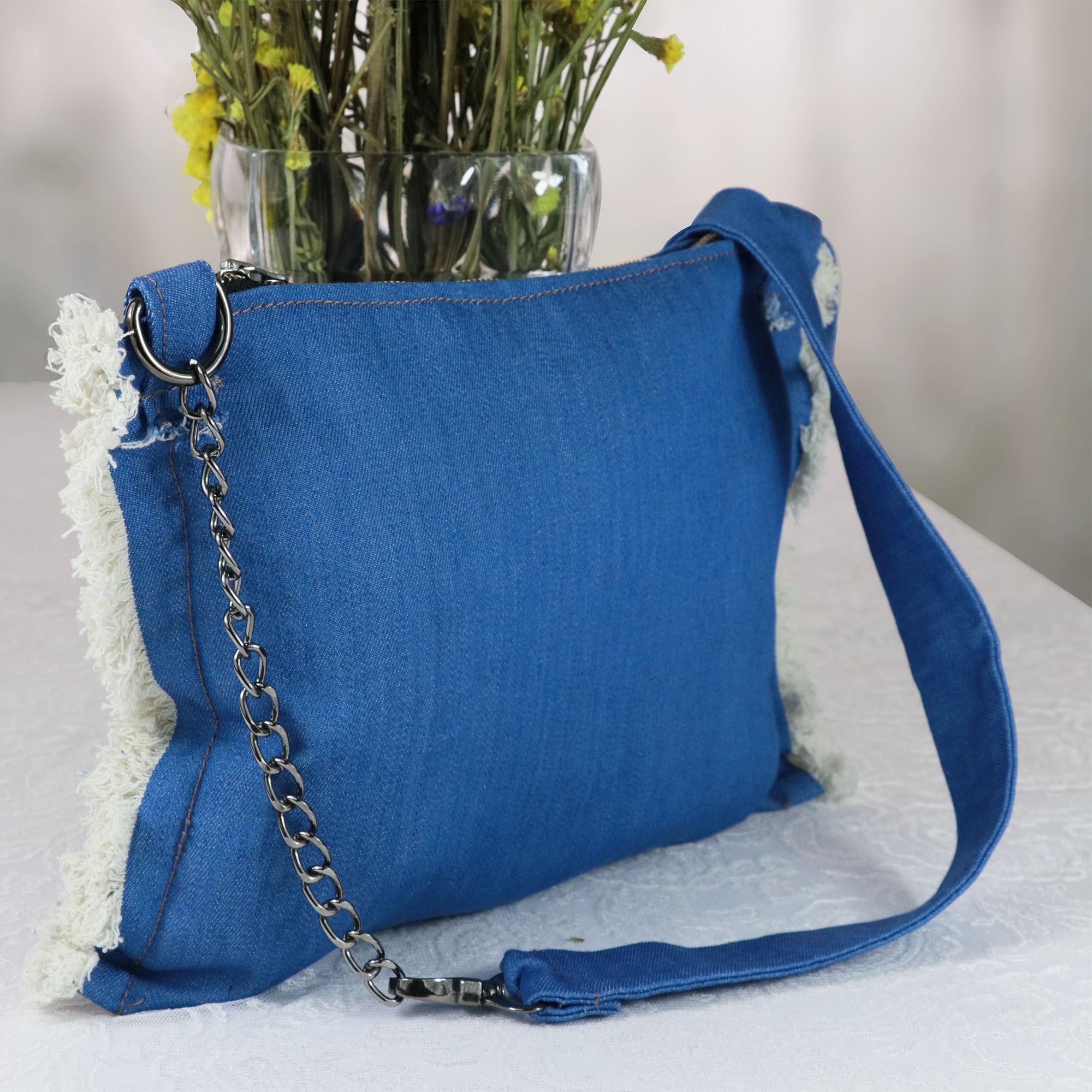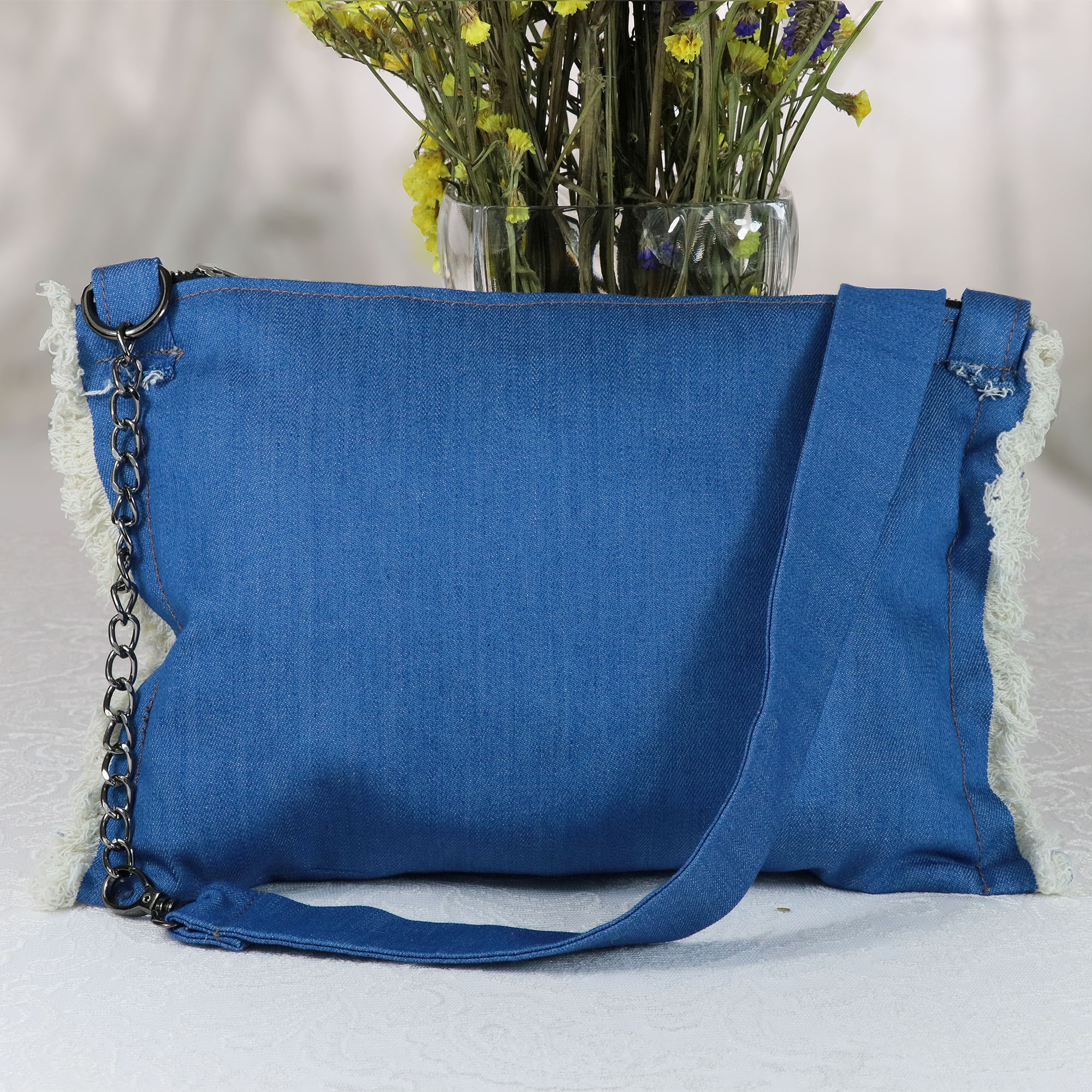 Fashion Moon Design Tasseled Jeans Fabric Free Bag Model Silver Color Chain Bag