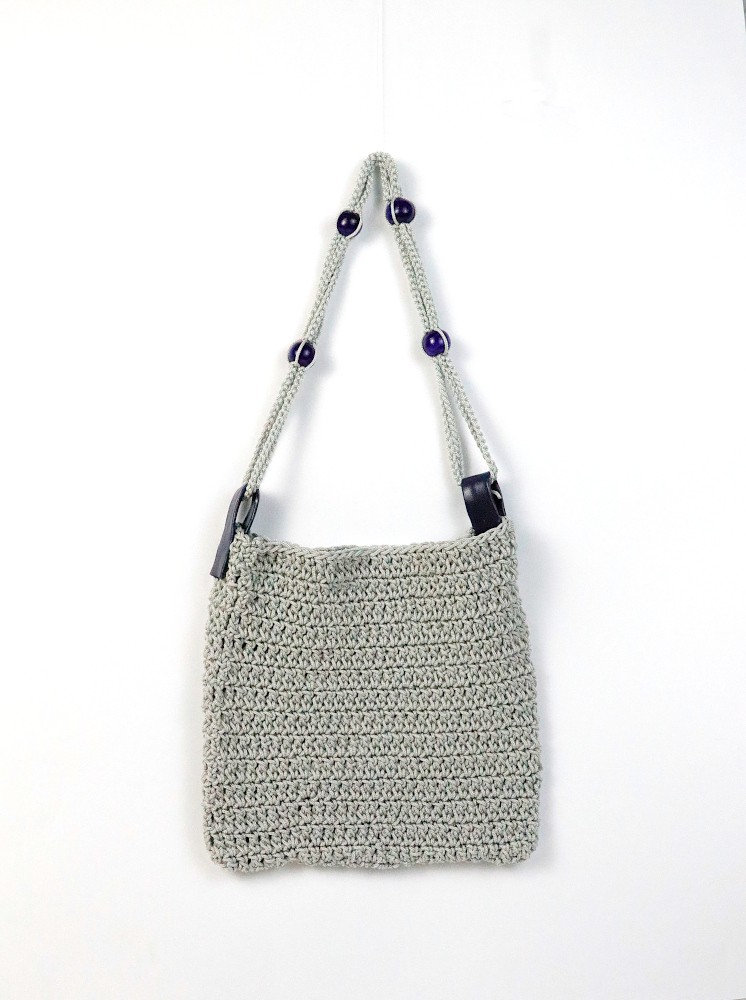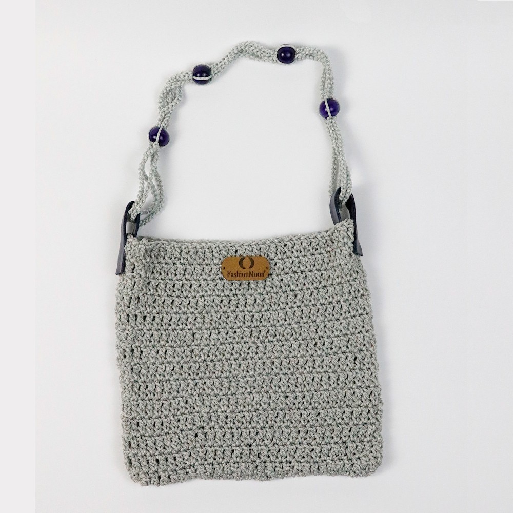 Fashion Moon Vintech Square Small Mercerized Bag Summer Handmade Bag Organic Navy Blue Glass Beaded Gray Rope Bag