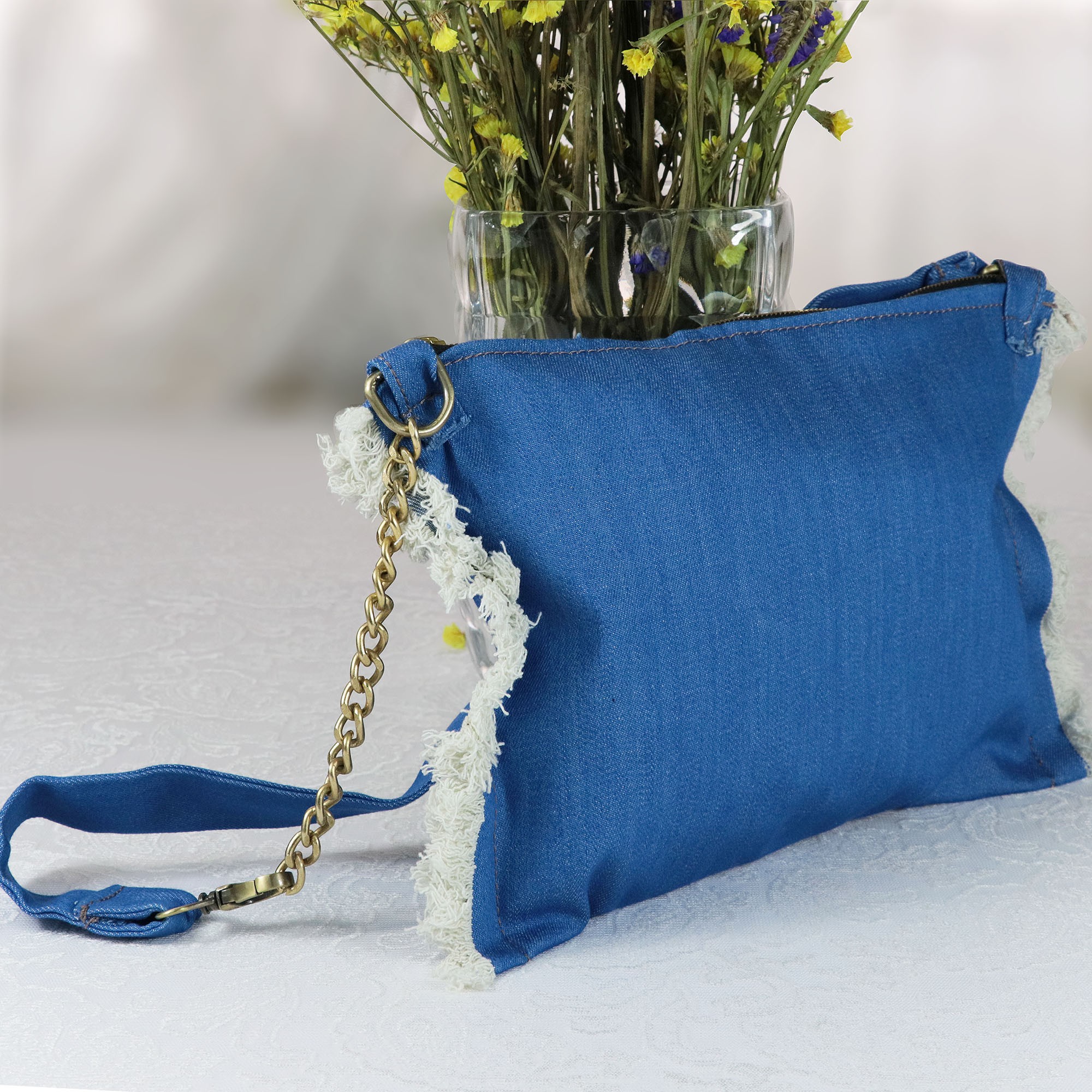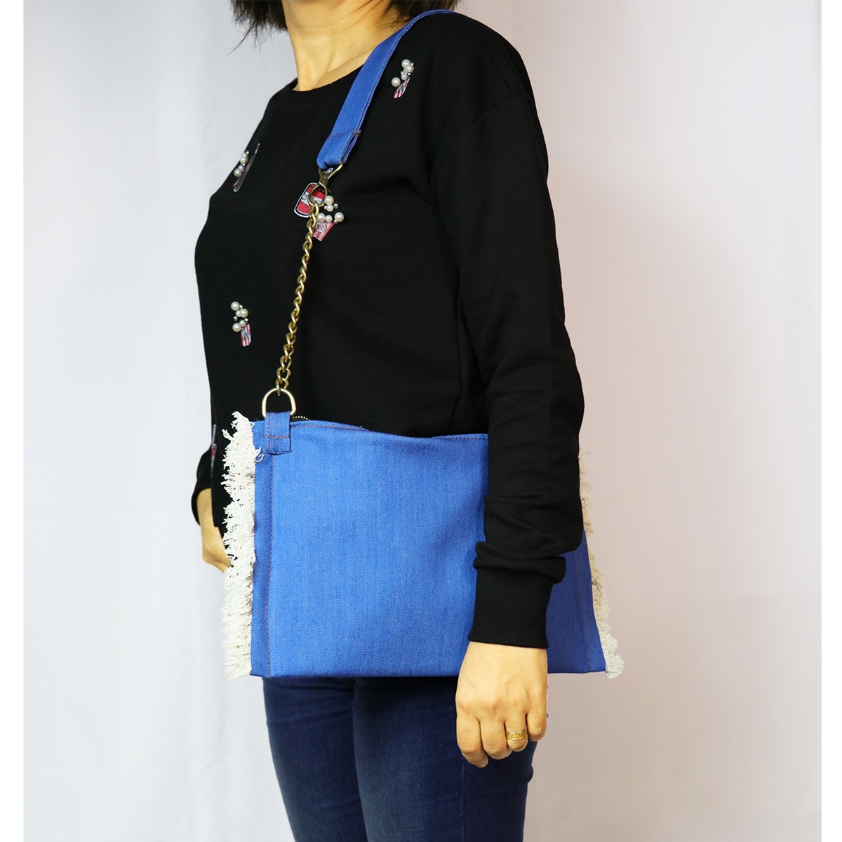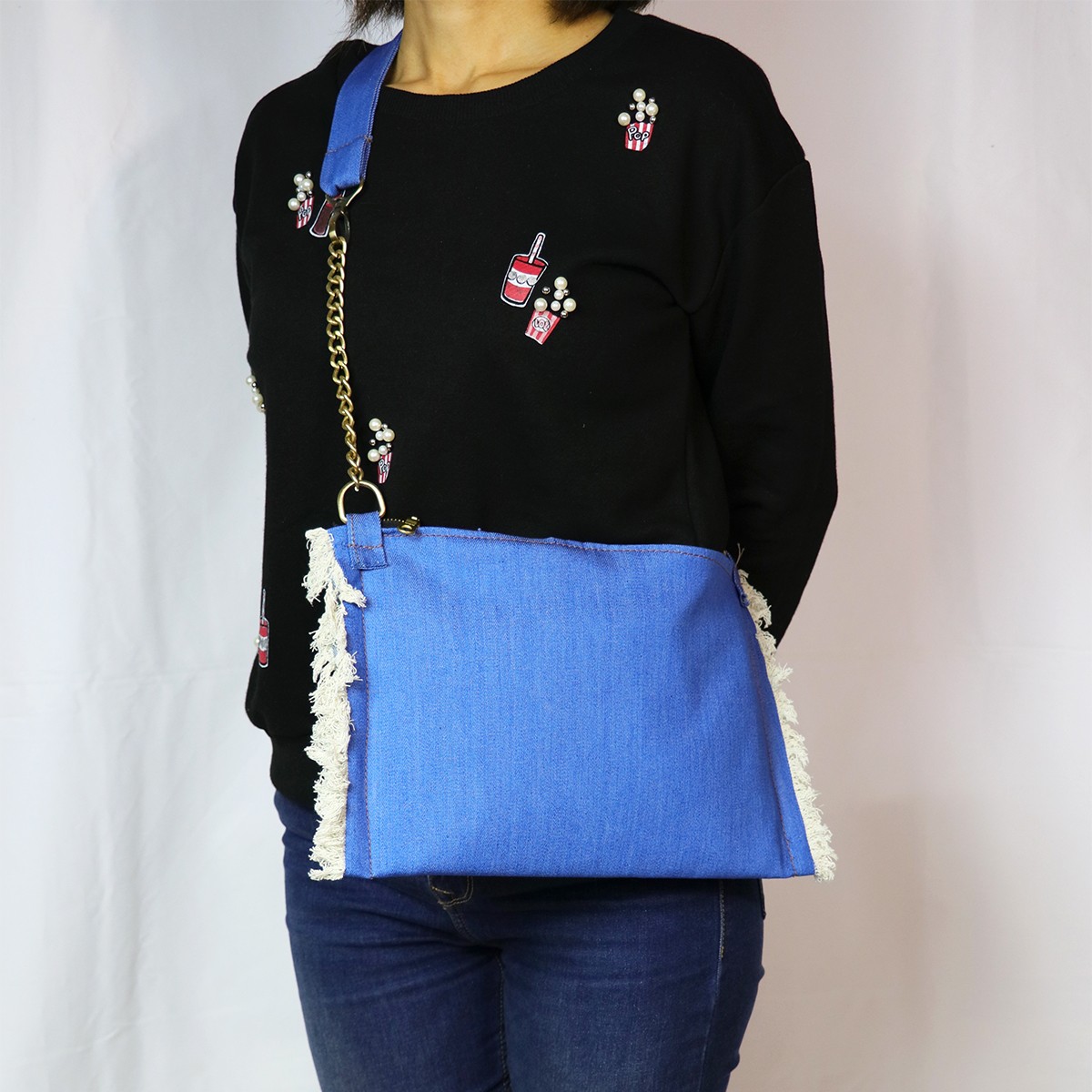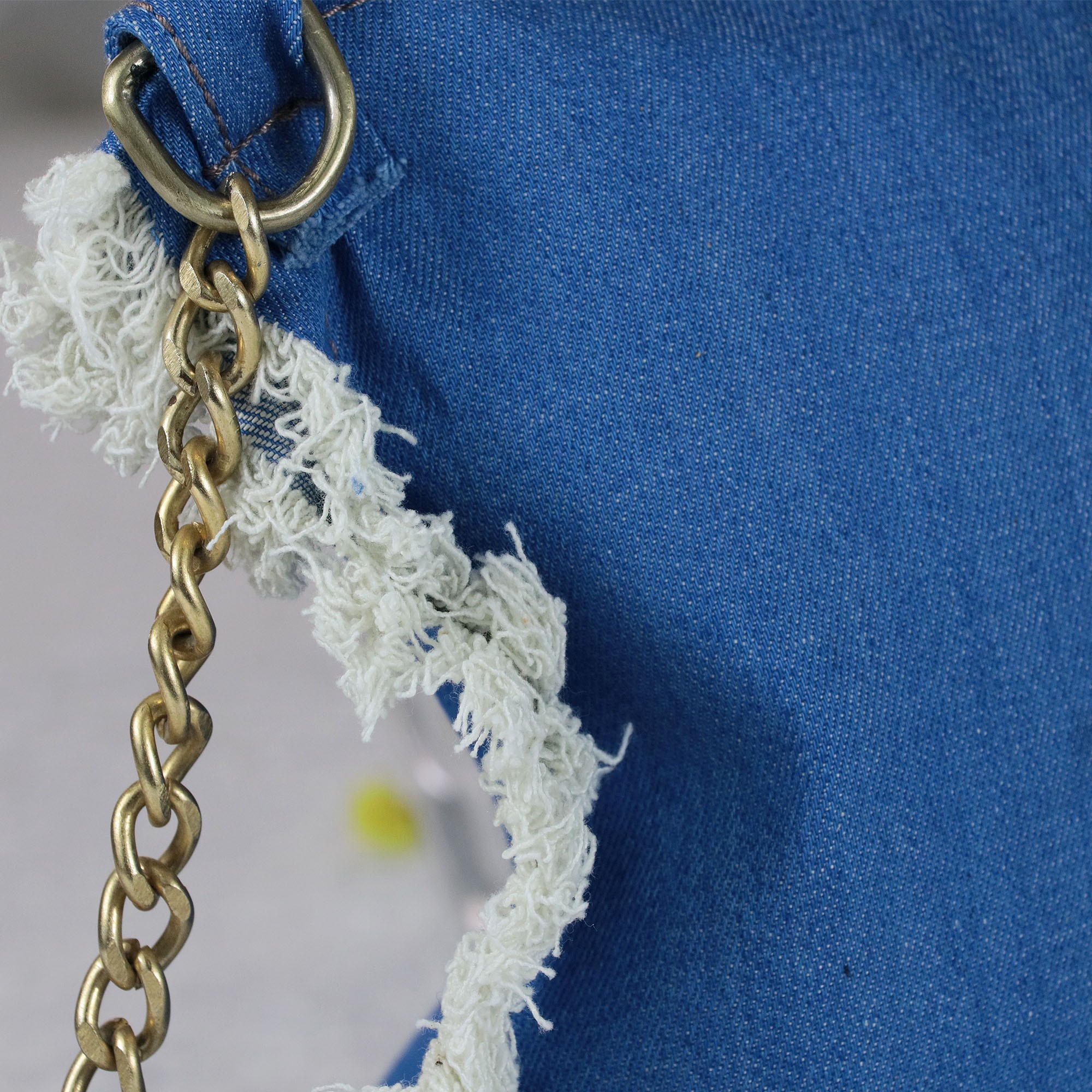 Fashion Moon Design Tasseled Jeans Fabric Free Bag Model Gold Color Chain Waist Bag