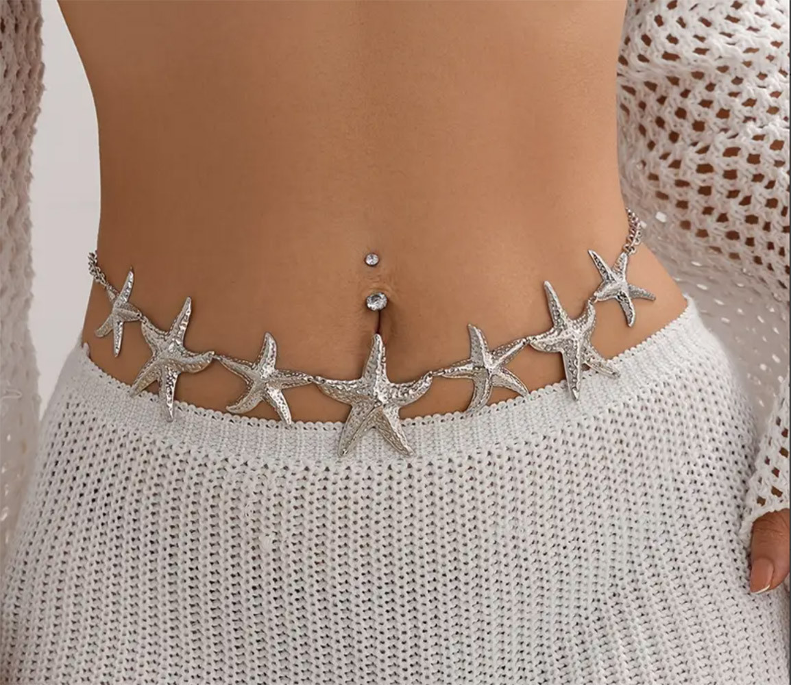 * Kadınlar İçin Metal Denizyıldızı Bel ve Vücut Zinciri - Altın Tonlu Şık Plaj Takısı, Yaz Tatilleri, Partiler & Günlük Kıyafetler için Çok Yönlü Aksesuar, Zarif Tasarım Kemer