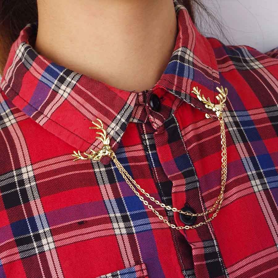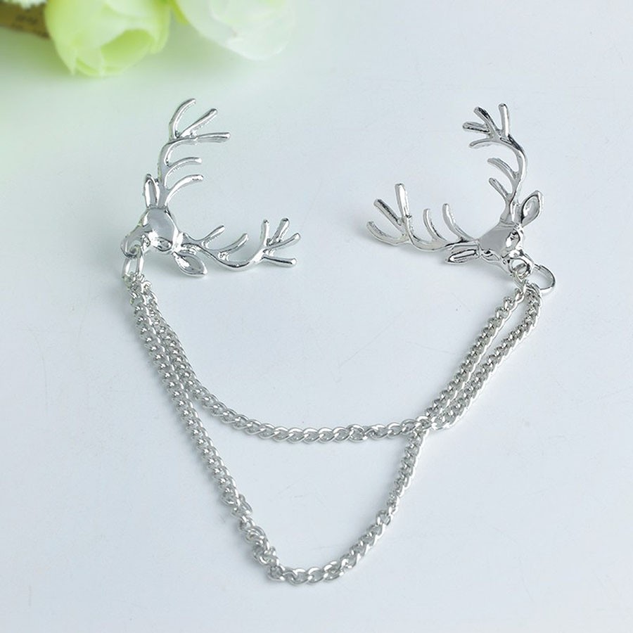 FashionMoon Geyik Başlı Zincirli Yaka Ucu Broşu
